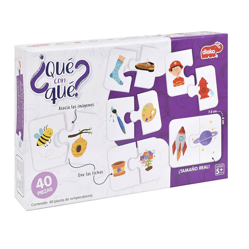 El DIAKO BU-1613 Rompecabeza “¿Qué con Qué?” transforma el aprendizaje en un reto divertido, ayudando a los niños a descubrir y comprender el mundo que los rodea.