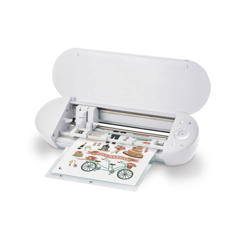 Con capacidad de corte de hasta 8.5" de ancho, permite trabajar con vinilo, papel, cartulina y más.